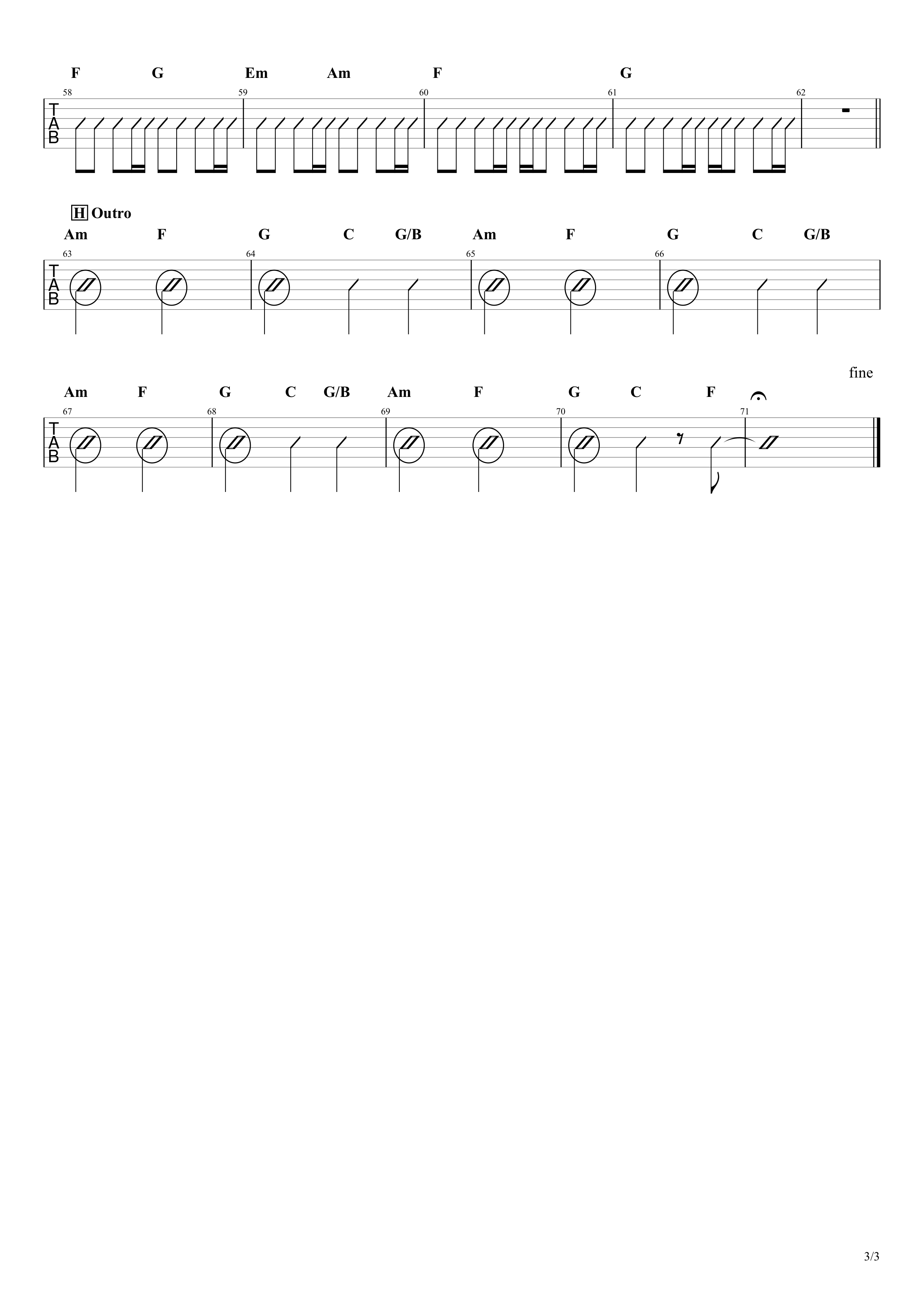自動スクロールの速度を曲に合わせて自由に変更できます。 弾いている時に両手がふさがっていても、画面が自動でスクロールするので便利です! 自動スクロール速度の変更はプレミアム会員限定機能です。 閉じる 使ってみる カポ 2(1音下げtuning) 1(半音下げtuning) ±0 (原曲キー) ★簡単弾き 1(Capo 1) 2(Capo 2) 3(Capo 3) 4(Capo 4) 5(Capo 5) 6(Capo 6